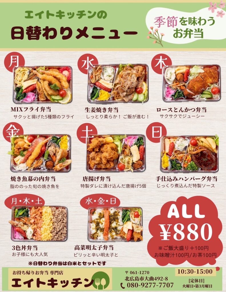 北広島市大曲で営業中のお弁当屋さん、エイトキッチン!