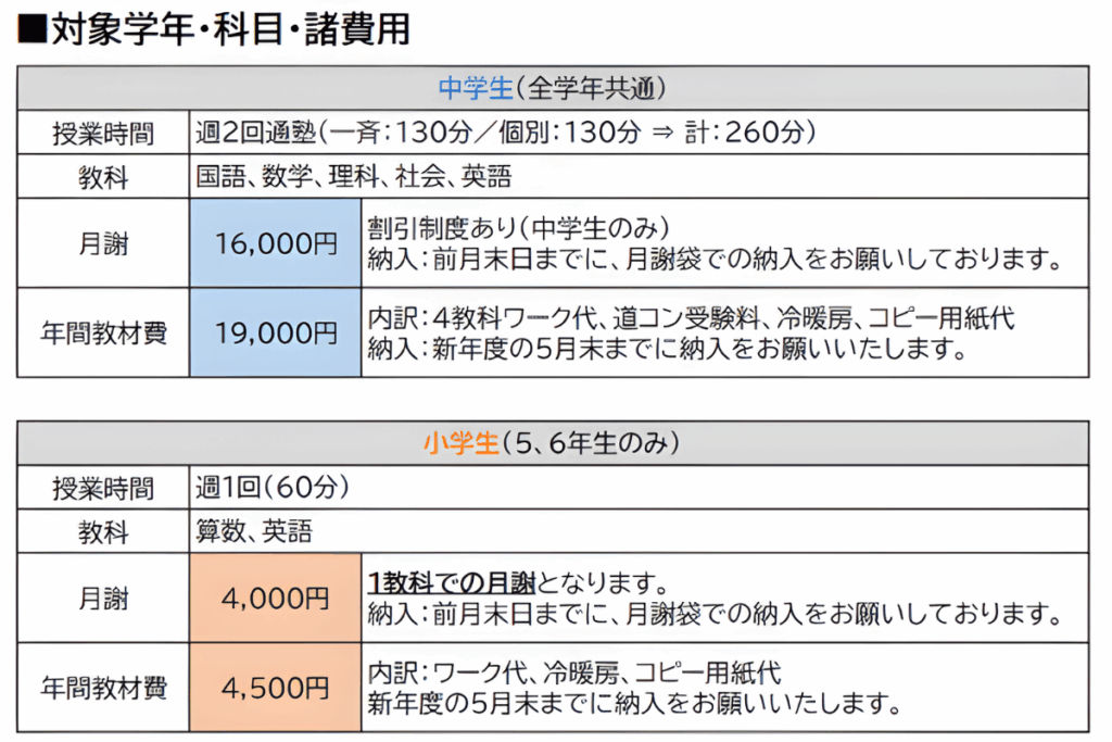 ①兄弟同時の通塾の場合、年少者の月謝が割引!