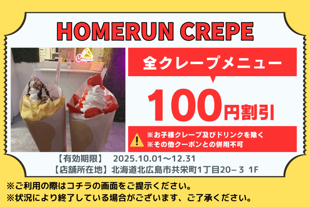 | 店名 | HOMERUNCREPE(ホームランクレープ) |