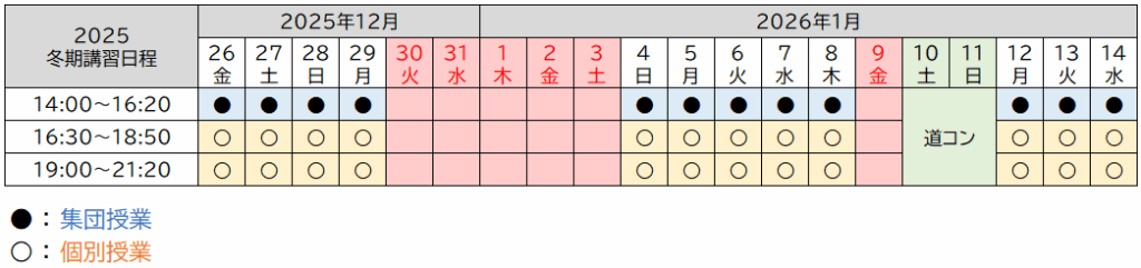 2025冬季講習の申し込みを受け付け中!(12月23日まで)