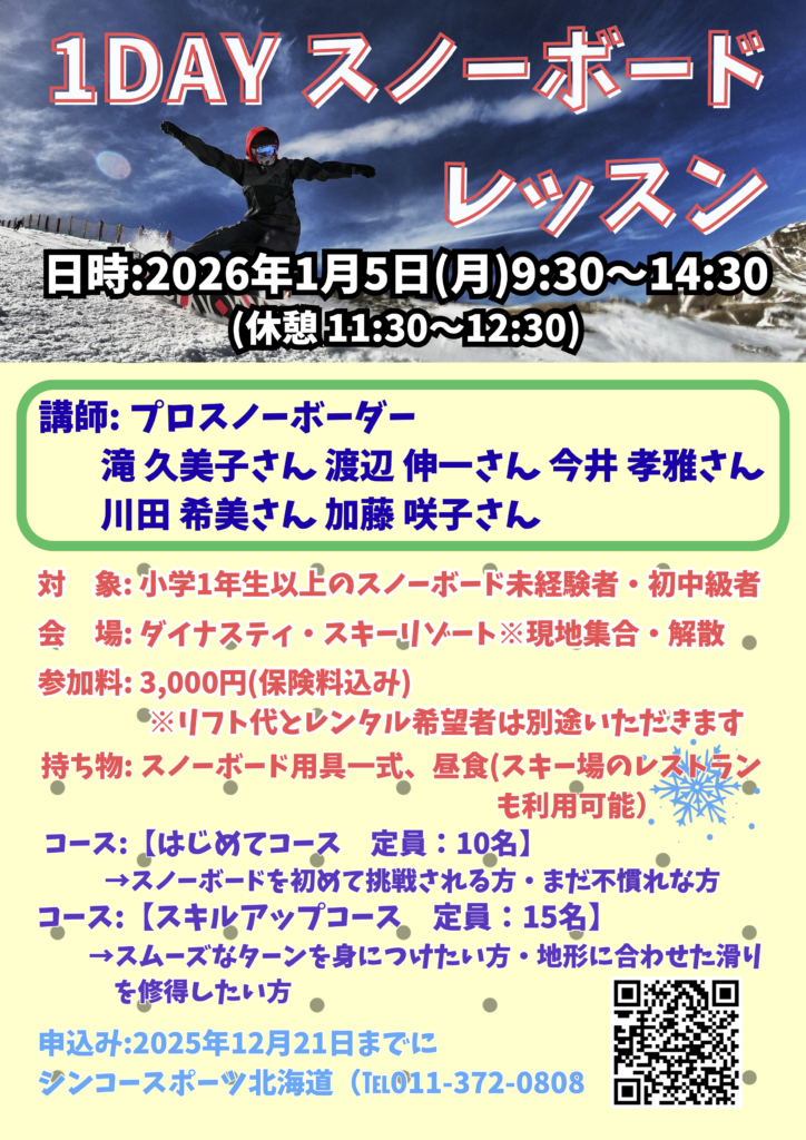 | イベント | 1DAY スノーボードレッスン |