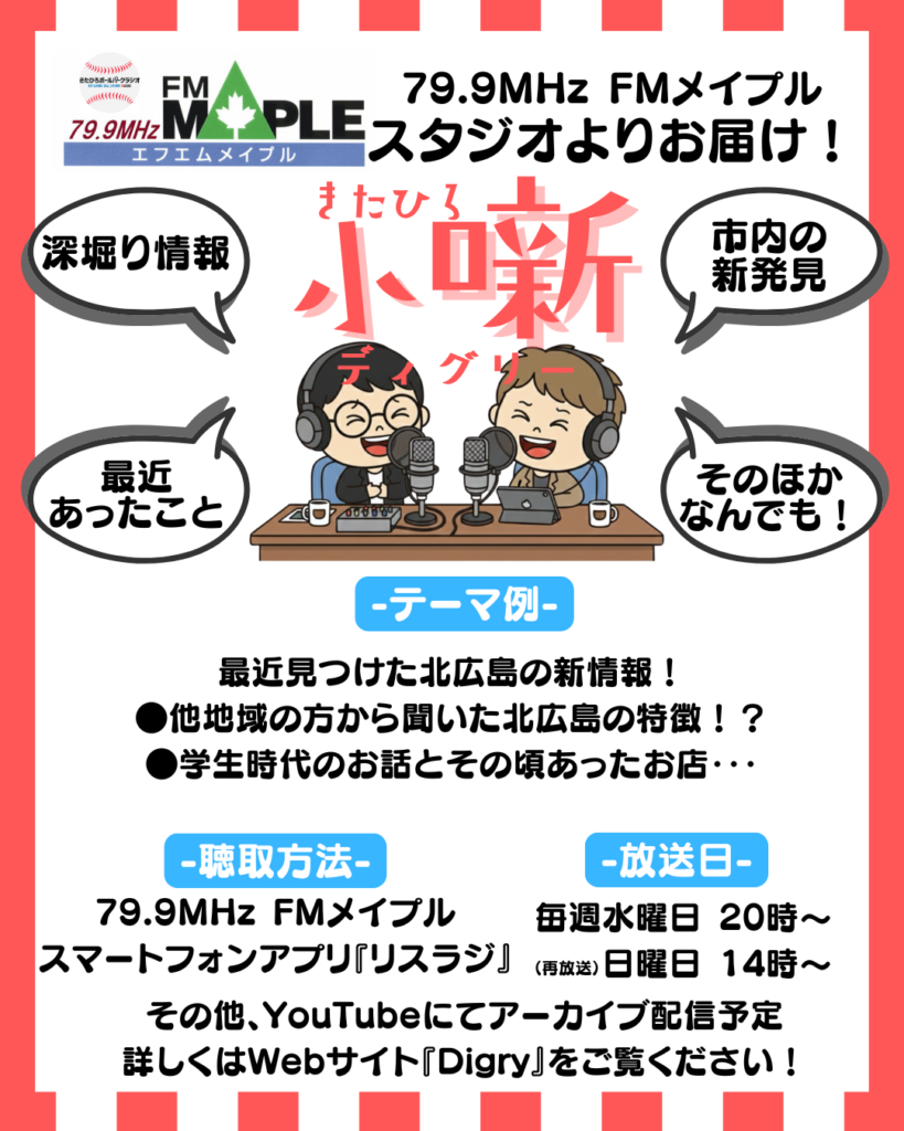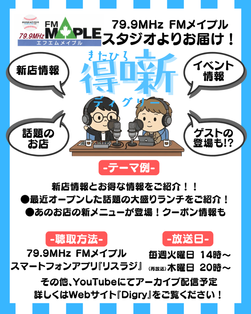 FMメイプル きたひろボールパークラジオにて、DigryがMCを務める情報番組を2026年よりスタートすることとなりました!