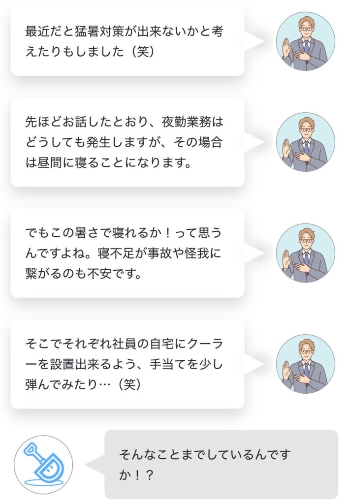 そしてそのサポートというのも、手当だけでなく、夜勤の時に昼間寝やすいようクーラー設置の補助…!?これは手厚い…。
