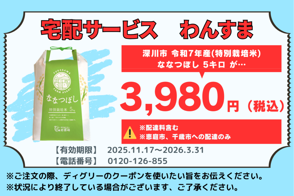 千歳市を中心に話題となっている『宅配サービス わんすま』。