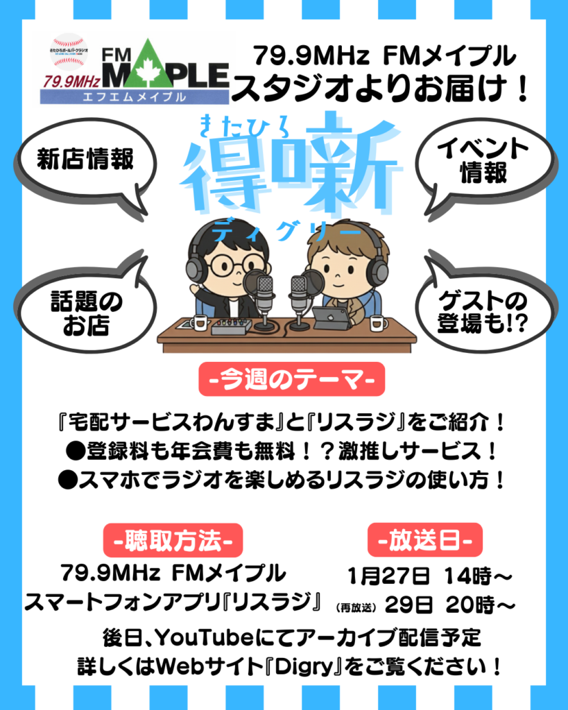 【きたひろ得噺ディグリー】『宅配サービスわんすま』と『リスラジ』をご紹介!