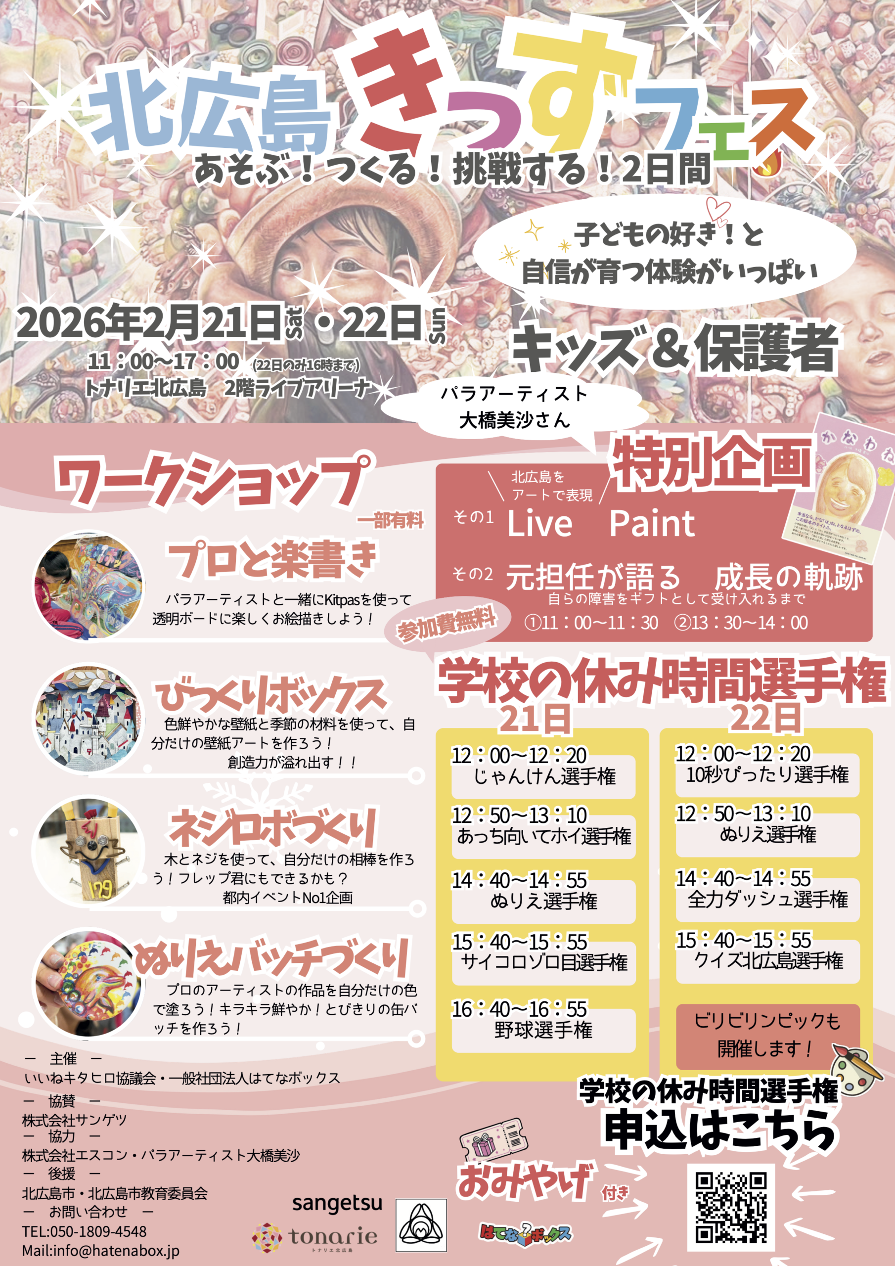 | 主催等 | 主催:いいねキタヒロ協議会・一般社団法人はてなボックス 協力:株式会社エスコン、パラアーティスト 大橋 美沙 後援:北広島市、北広島市教育委員会 |