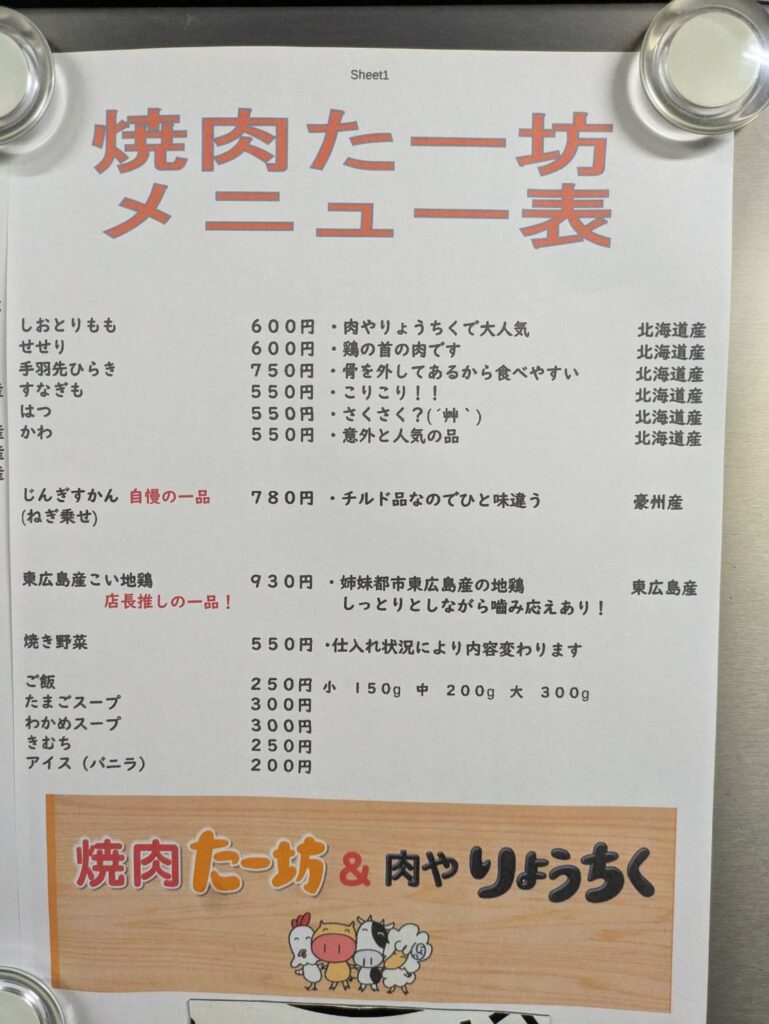 北広島市のお肉屋さんが営業する焼肉店『焼肉たー坊&肉やりょうちく』。