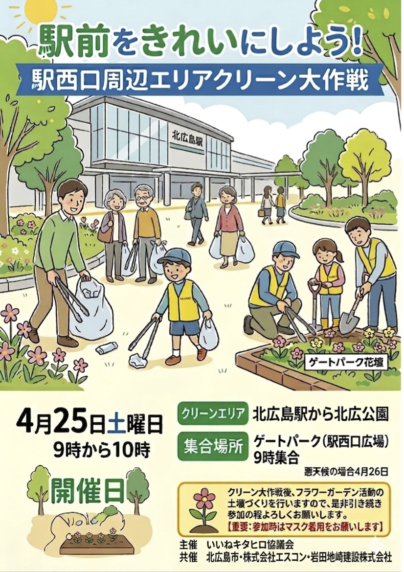 野球観戦をはじめとして、たくさんの人が訪れるようになった北広島市!その玄関口ともいえる駅前を綺麗にすることは大切ですよね!