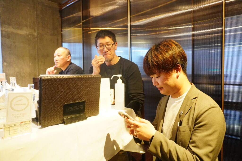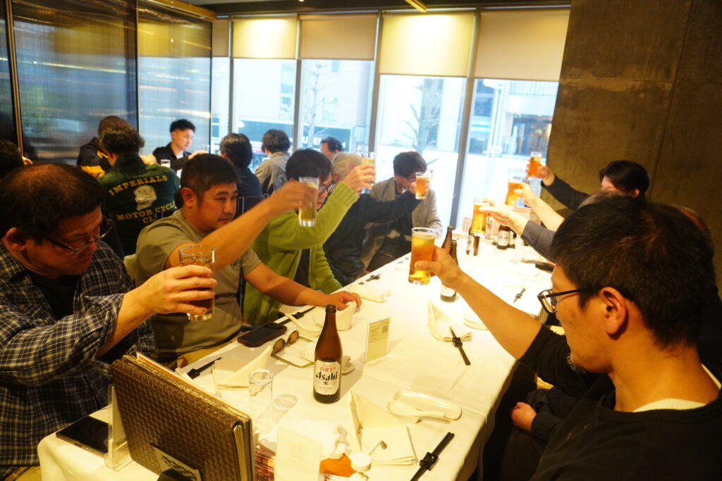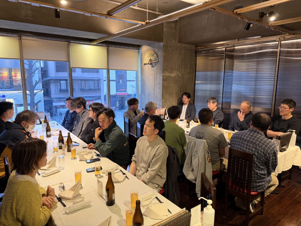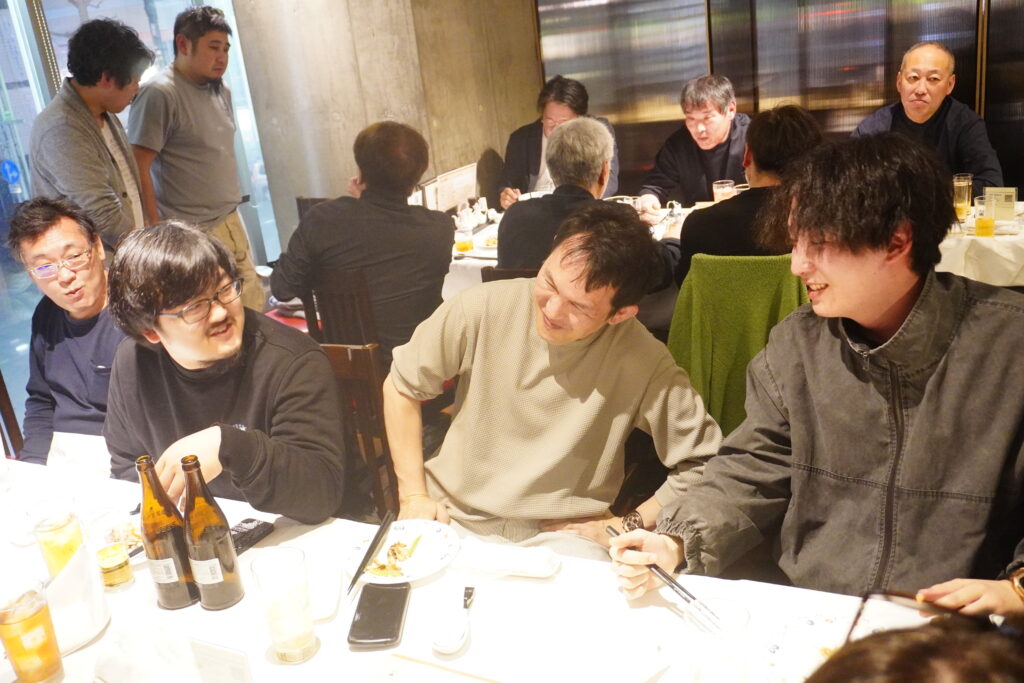 中達社長からご挨拶から始まった決起集会ではそれぞれが食べ飲みしながら、仕事やプライベートの話はもちろん、30年以上活躍するベテラン職人さんのエピソード、逆に若手職人が感じている最近のことなど、思い思いのお話が飛び出していました!