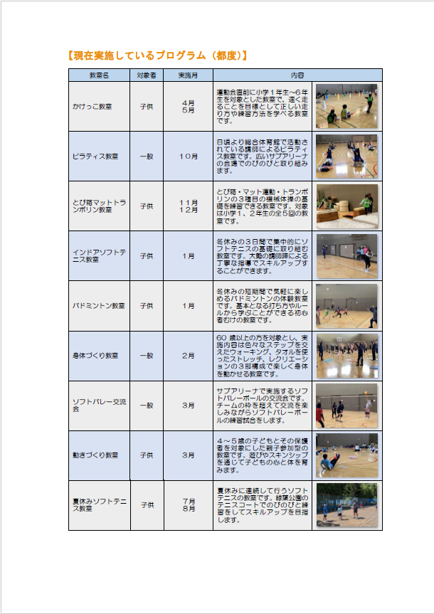 そちらは種目ごとにという感じでしょうか…。曜日ごとに利用できる種目は変わりますが、バドミントンなどは人気で市外からも多くご利用いただいていますね!