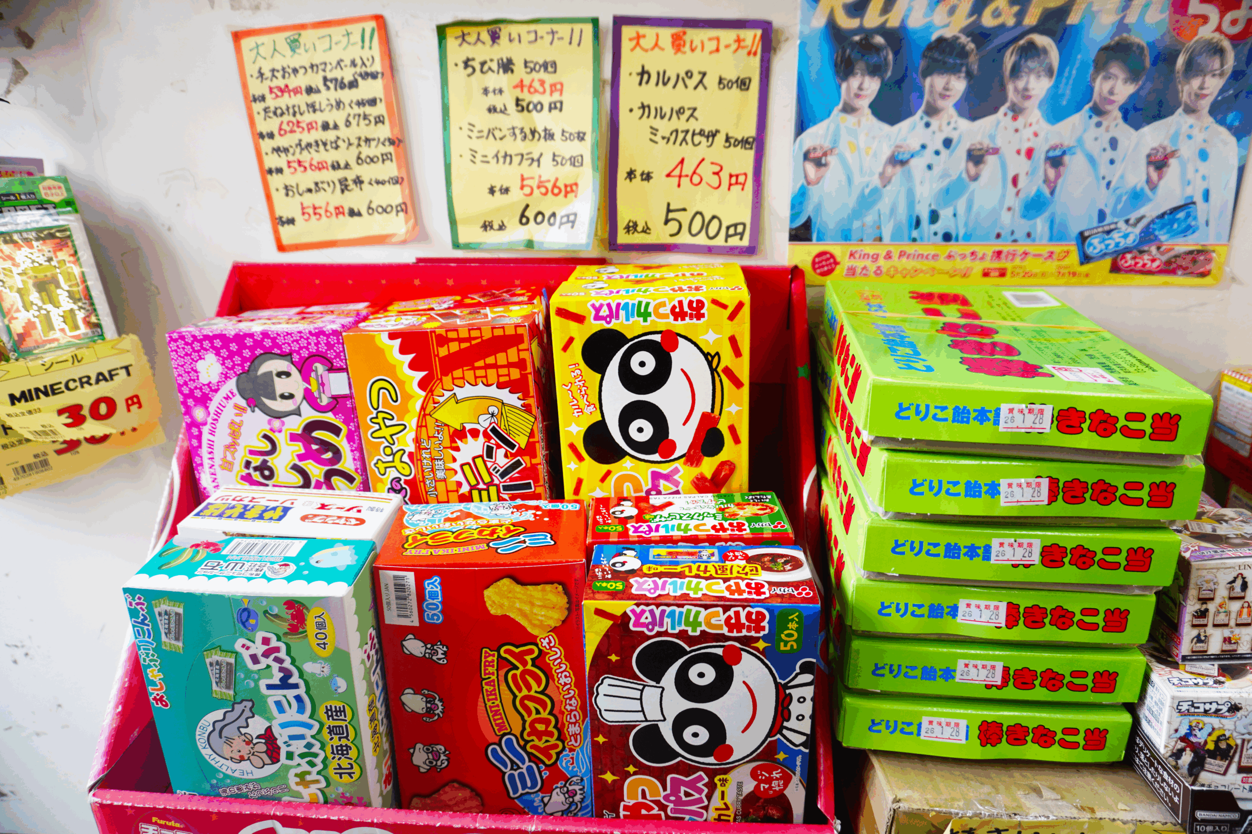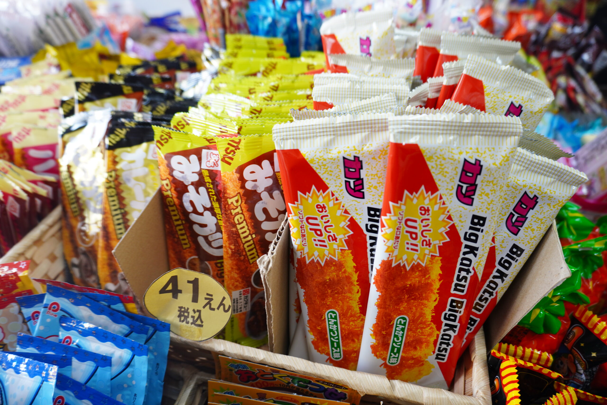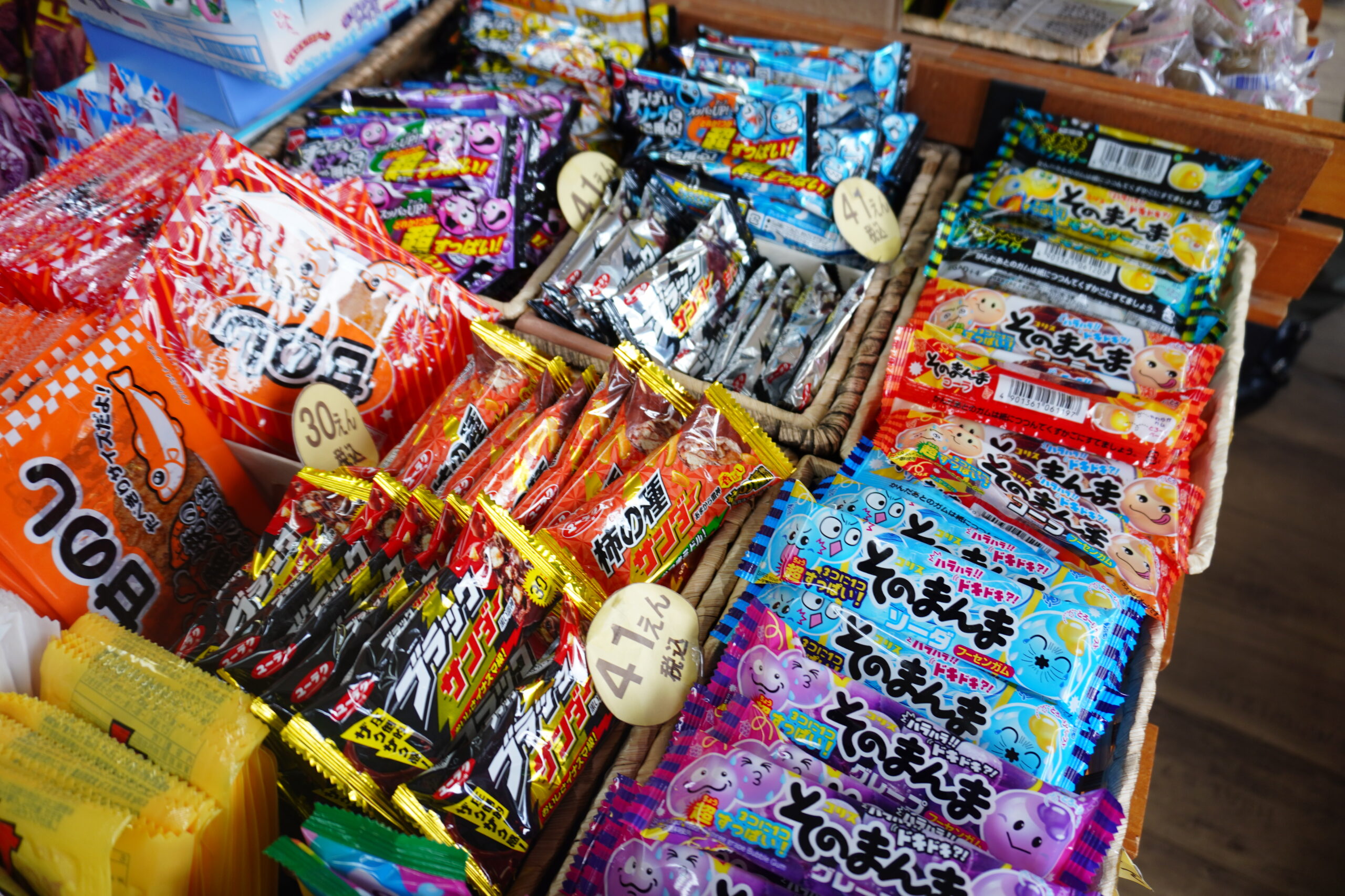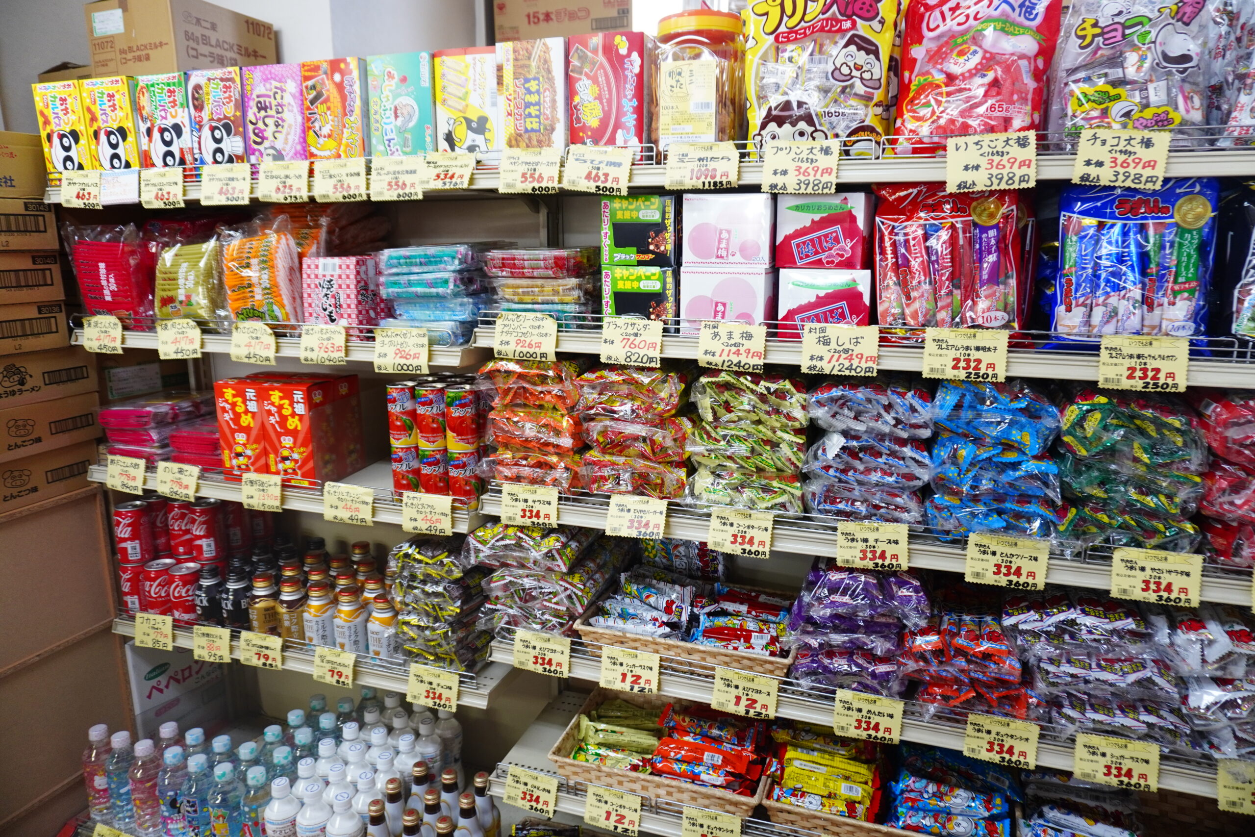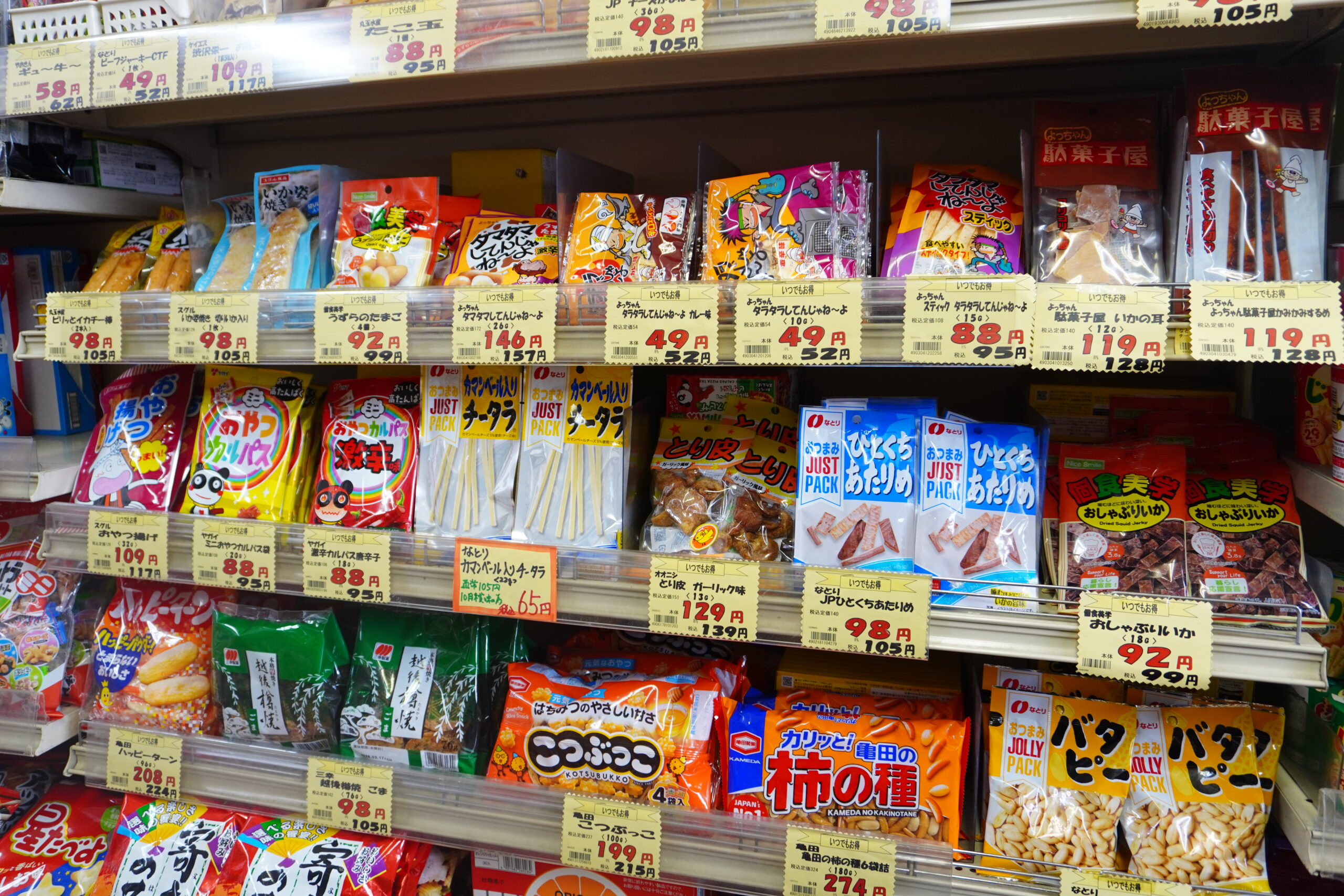 種類もお値段も魅力的ですもんね〜!そしてよく見るとスーパーで見かけるお菓子もかなりの量がありますね!
