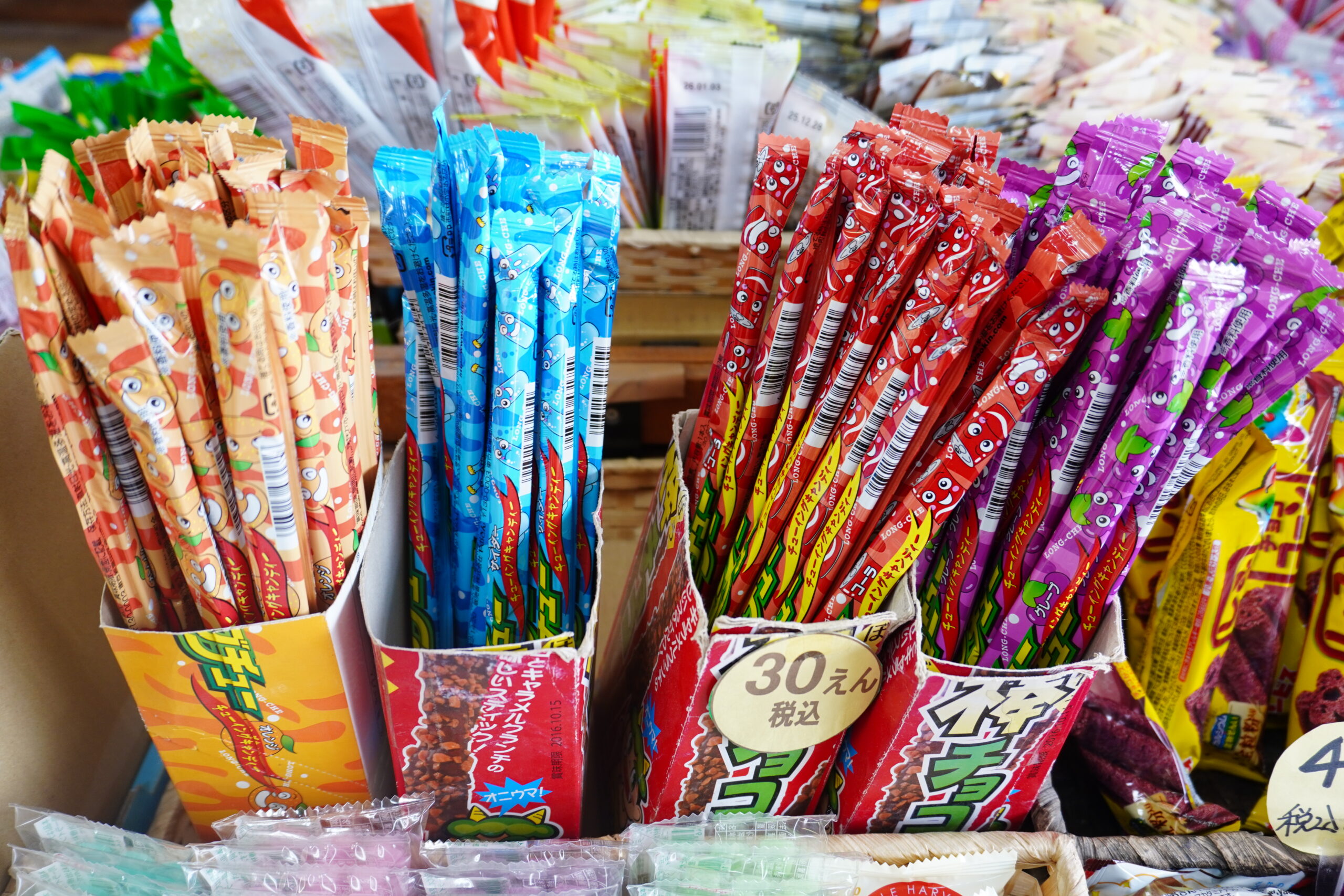 小学生はサワーペッパーやロングチュー、人気ですね!ゴソッと買っていく子も結構います。