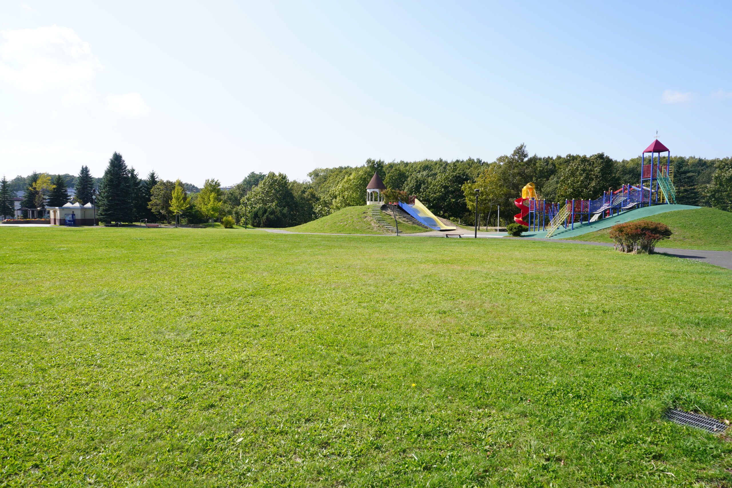 大曲東公園の魅力のひとつが、ゆったりと開けた芝生の広場です!