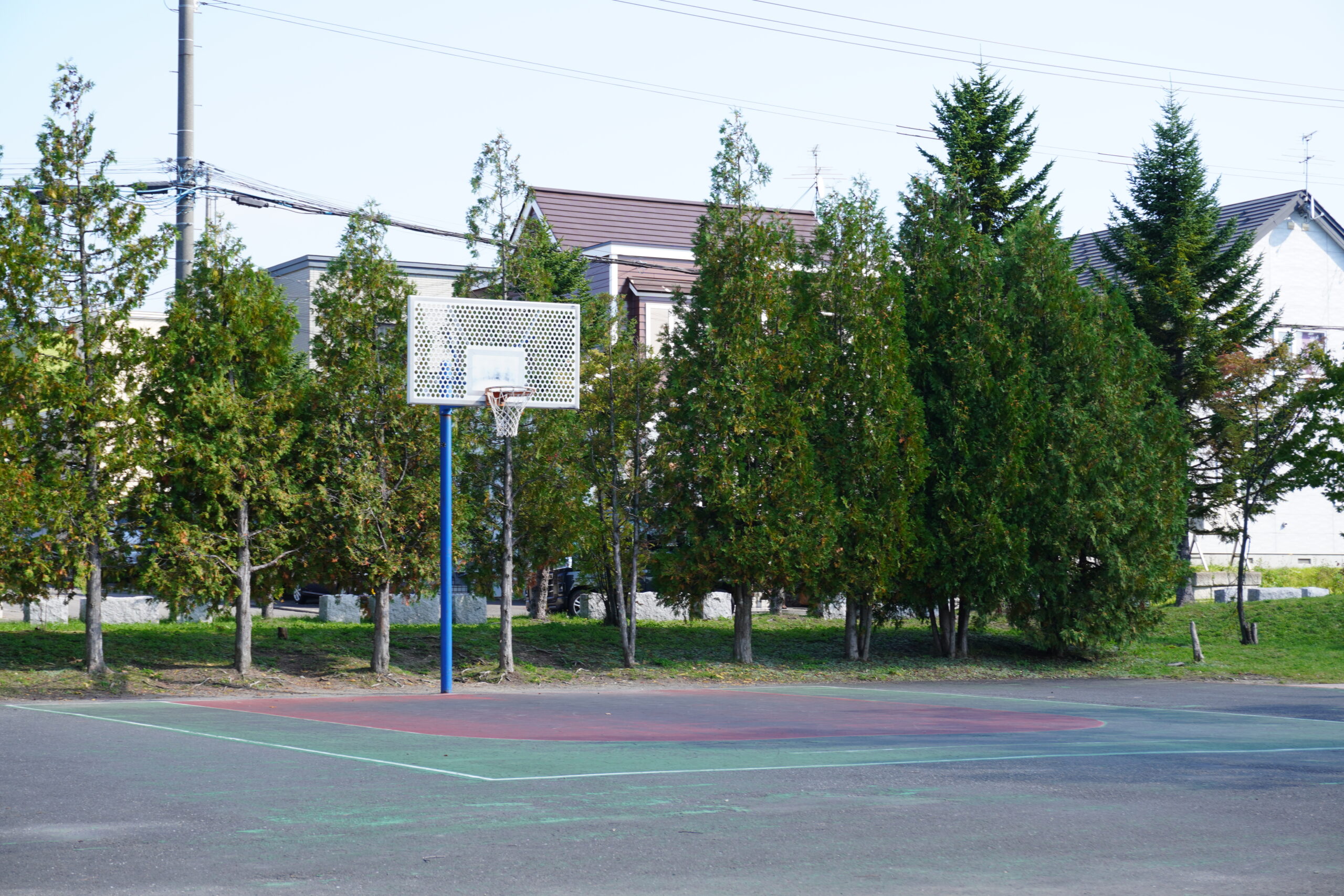 一方で、スポーツ施設も充実しており、バスケットコートでは学生や大人が軽い練習を楽しみ、テニスコートでは気分転換にラリーを楽しむ方の姿も。