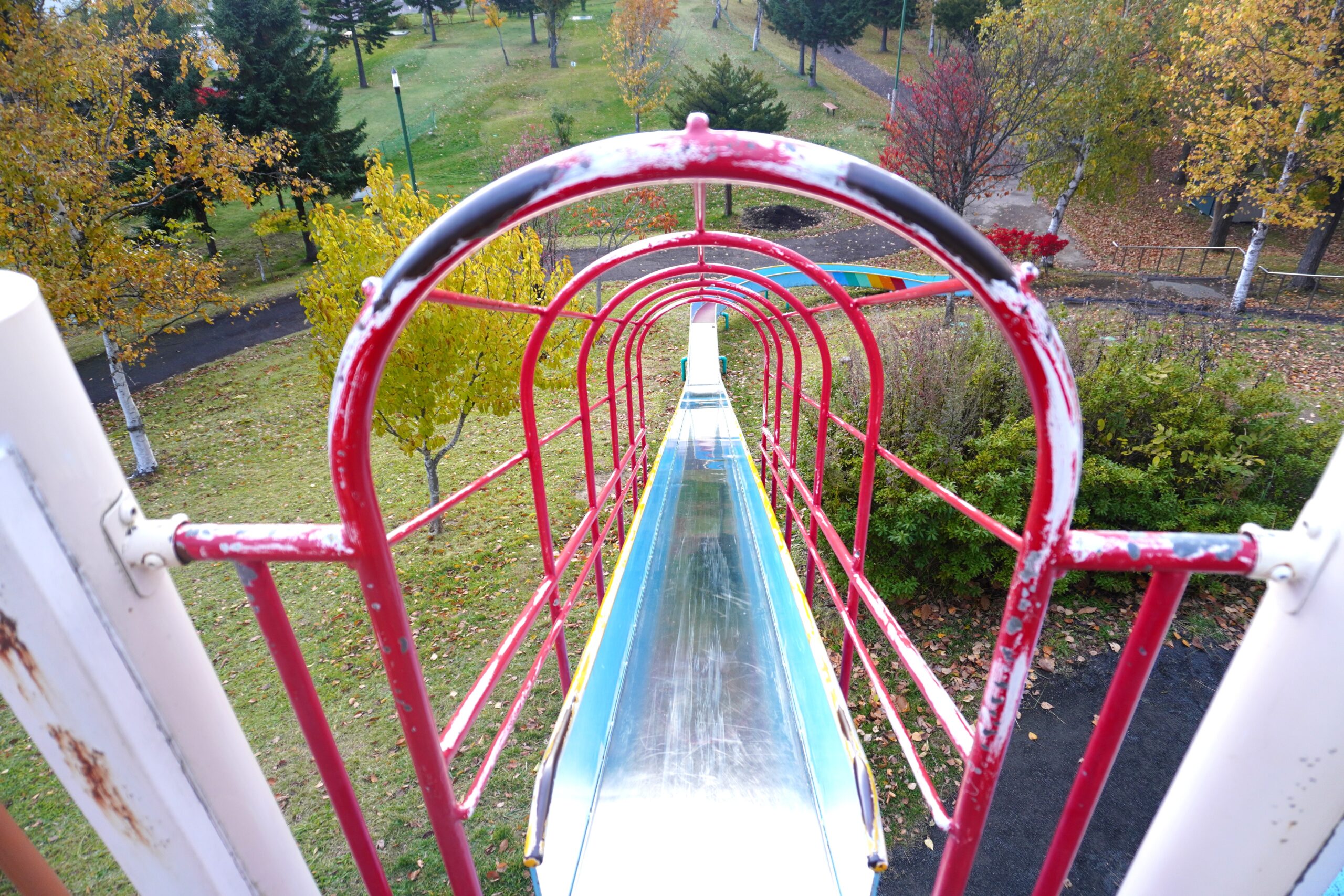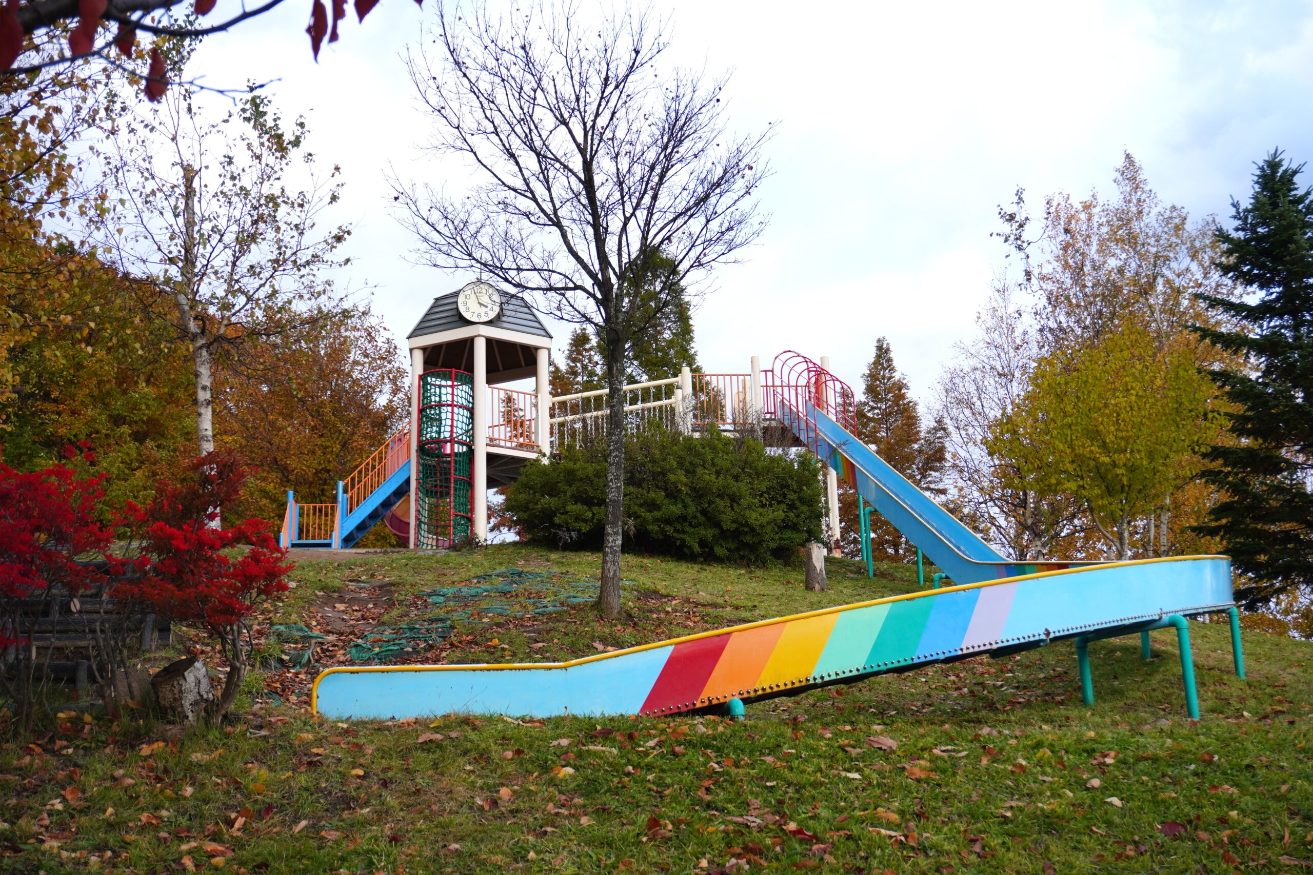 虹ヶ丘公園のシンボルといえば、丘の上から滑り降りる長いすべり台。