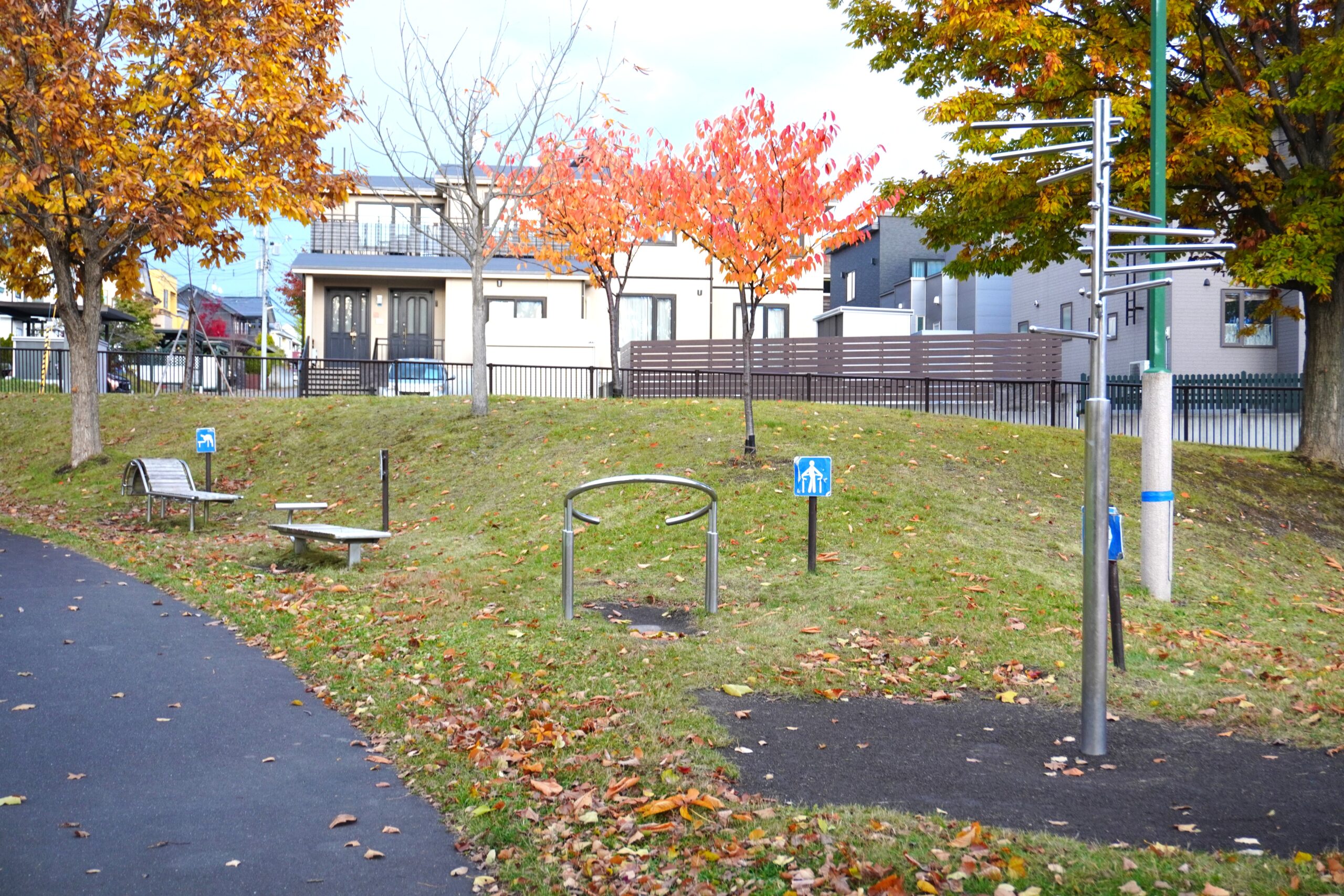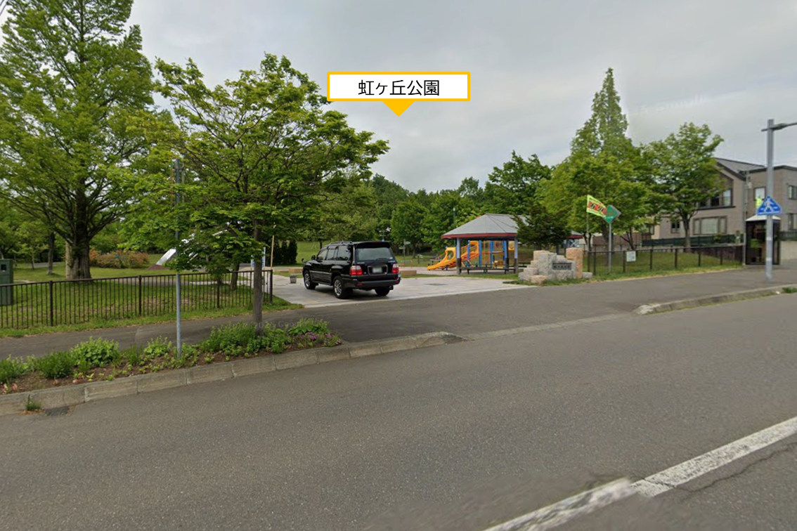 北広島市虹ヶ丘エリアの住宅街の中にある「虹ヶ丘公園」。